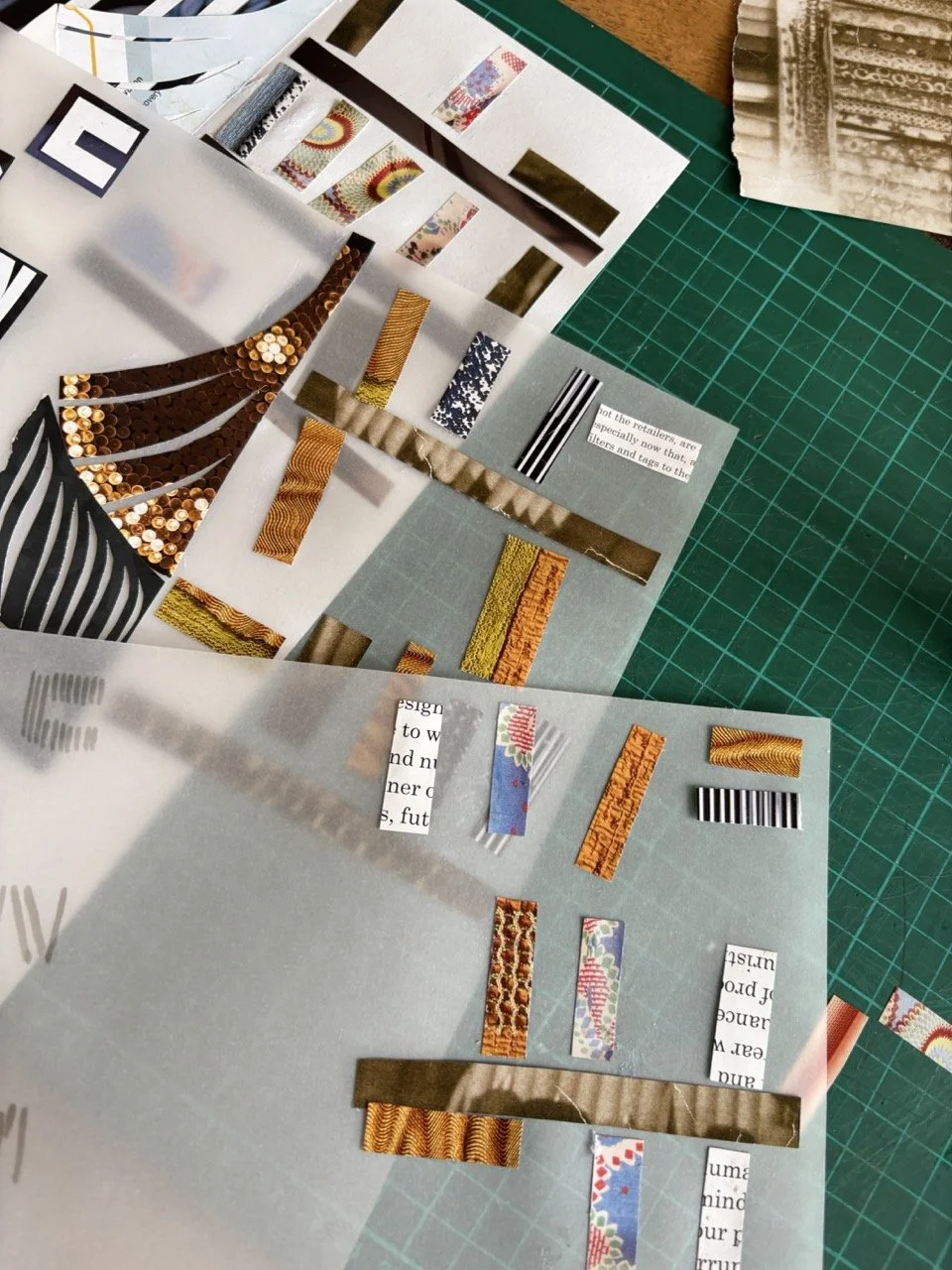 3 layers of collage in preparation for Riso printing at Rabbits Road Press
